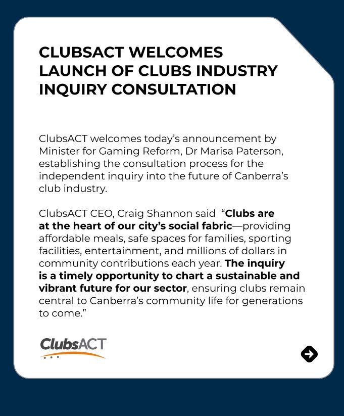 ClubsACT welcomes the launch of the Clubs Industry Inquiry consultation process.